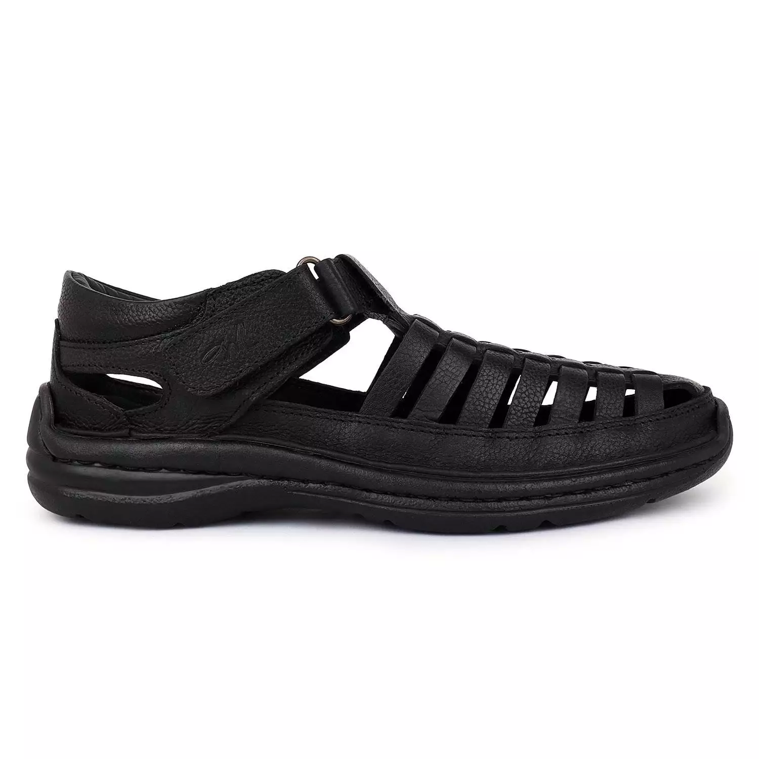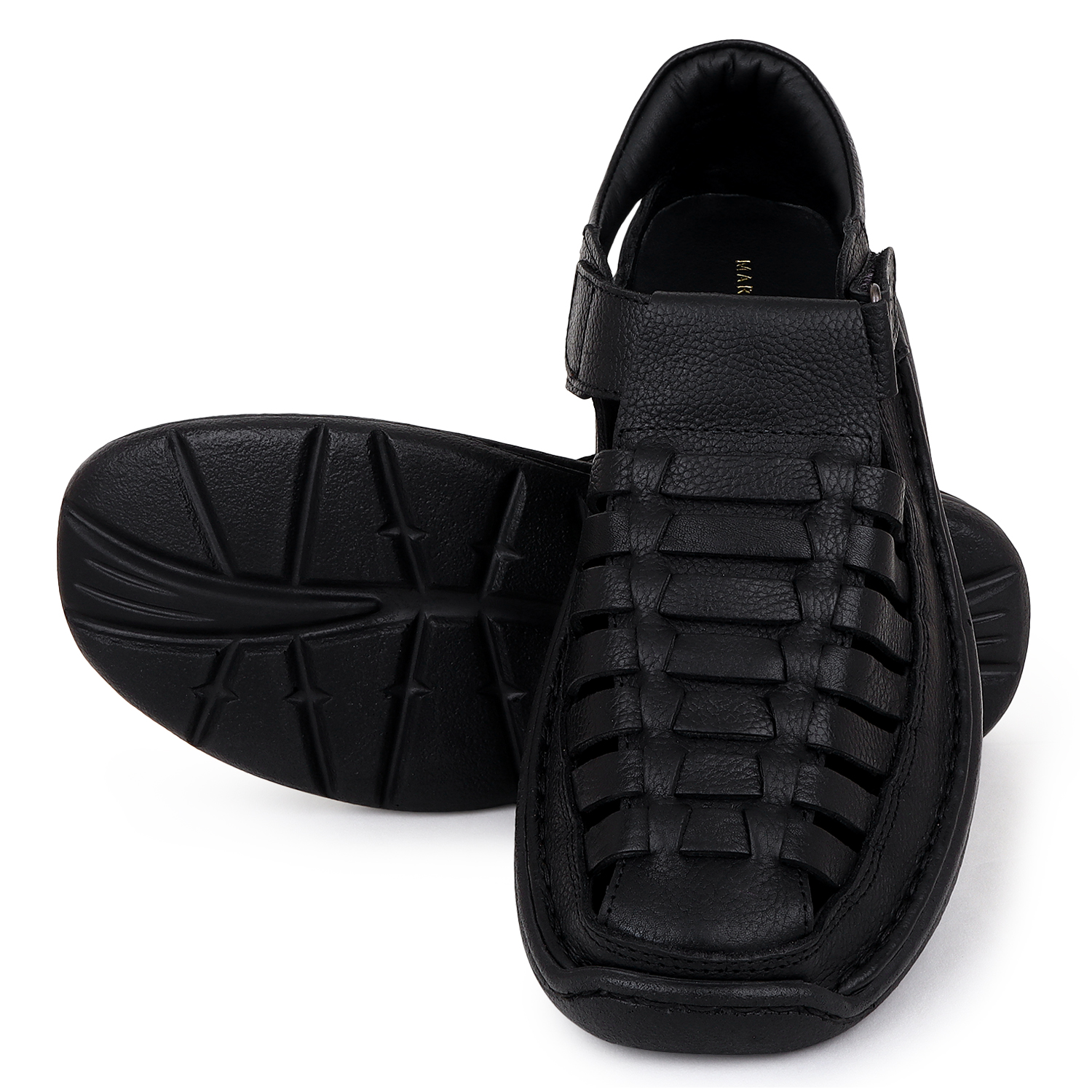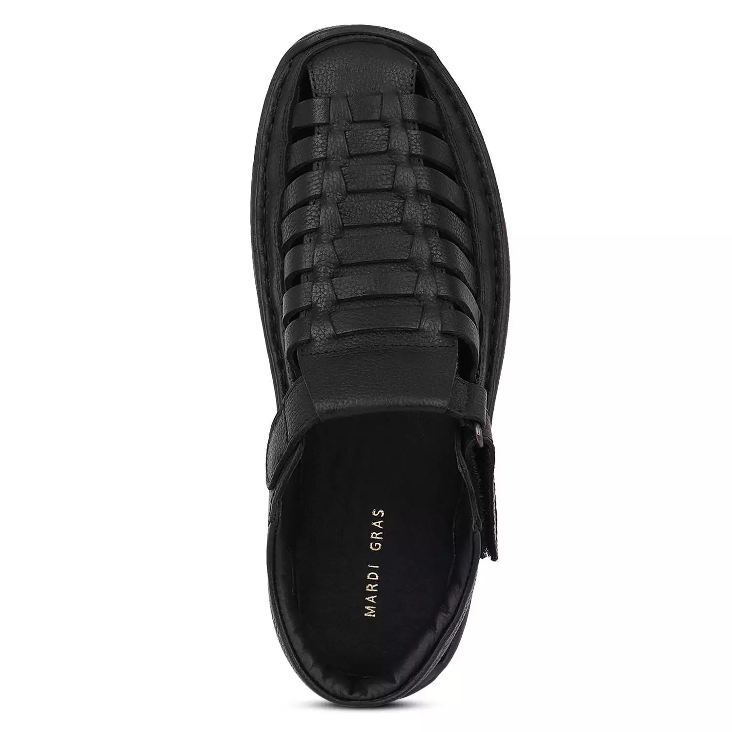 Black Leather Multi Strap Shoe Type Sandals for Men