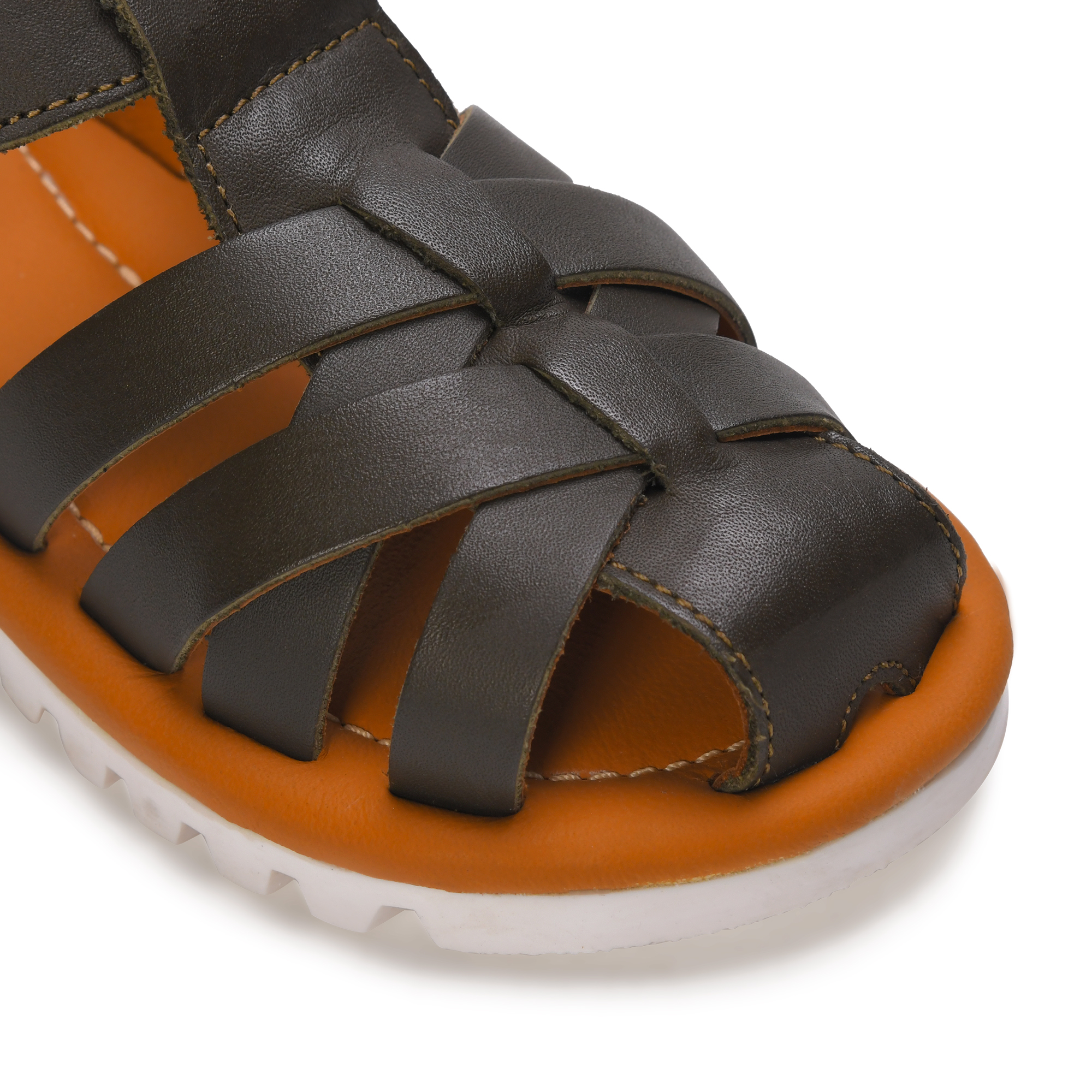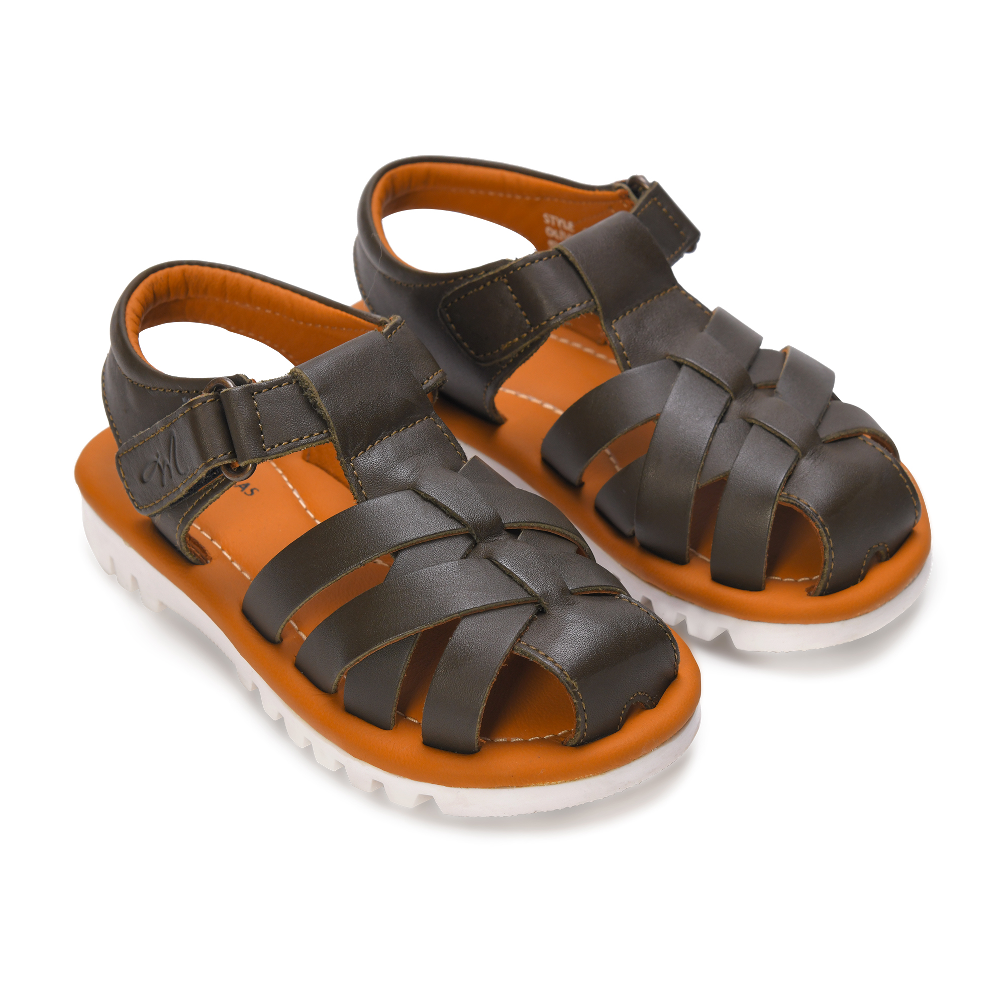 These charming gladiator sandals for toddler boys combine style with practicality. Crafted from brown leather, these sandals feature a classic gladiator design with multiple straps that provide secure foot coverage while maintaining breathability. The white sole offers excellent grip and durability for active little feet. The adjustable strap closure ensures a snug, customised fit, making them perfect for growing toddlers. The comfortable footbed is designed to support natural foot development, while the sturdy construction withstands daily adventures. These versatile sandals complement both casual and semi-formal outfits, making them an excellent choice for various occasions. The contrast between the brown leather upper and white sole creates a sophisticated look that’s still playfully appropriate for young children. These sandals are practical for warm weather and indoor activities, offering both style and functionality for your little one’s footwear needs.