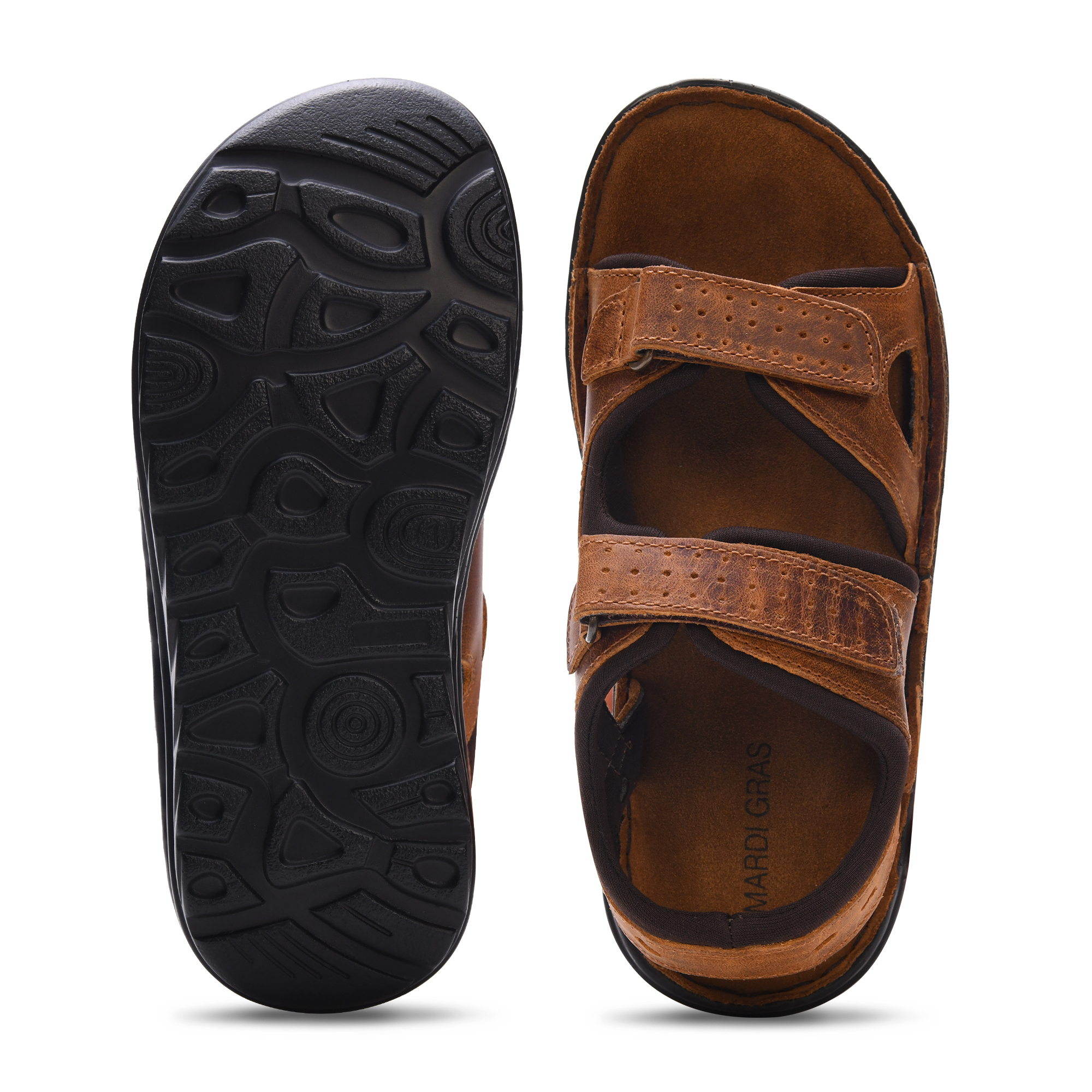 MARDI GRAS Men’s Leather Sandals – Genuine Leather Upper, PU Sole, Leather Lining – Comfortable Walking Sandals for Men (Brown/D.Brown, UK Footwear Size System, Adult, Men)