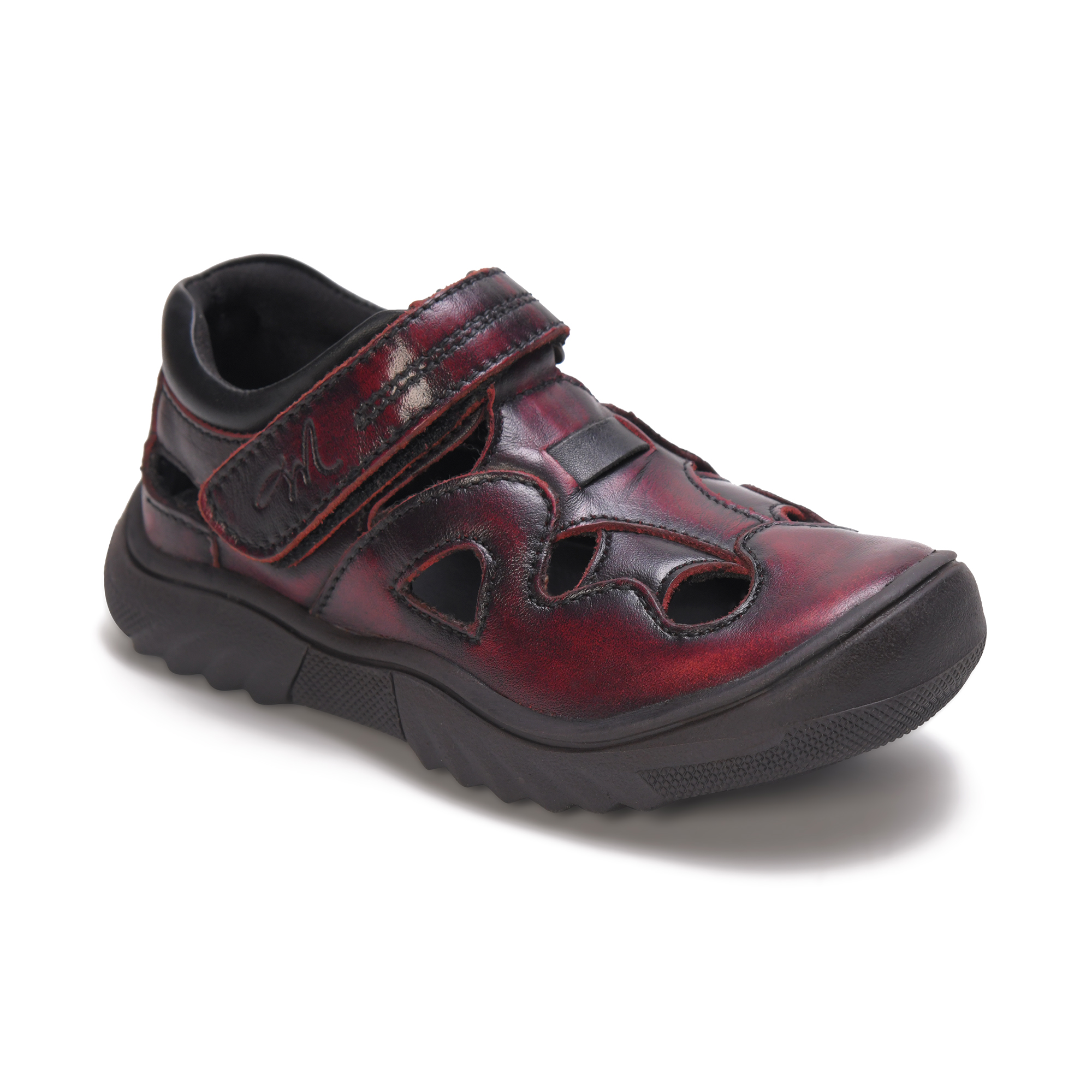 Introducing these stylish and comfortable toddler boys’ sandals in a striking black and burgundy leather design. The sandals feature a convenient hook and loop closure system, making them easy to put on and take off while ensuring a secure fit for active little feet. The durable rubber outsole provides excellent traction and stability, perfect for everyday adventures. The unique leather pattern adds a distinctive touch, whilst the cushioned footbed ensures all-day comfort. These sandals are crafted with quality materials and attention to detail, featuring reinforced stitching for enhanced durability. The flexible sole allows natural foot movement, supporting proper foot development. These versatile sandals can be paired with both casual and semi-formal outfits, making them an excellent choice for various occasions. The breathable design helps keep little feet cool and comfortable throughout the day. Available in a range of toddler sizes, these sandals combine practicality with style for growing feet.