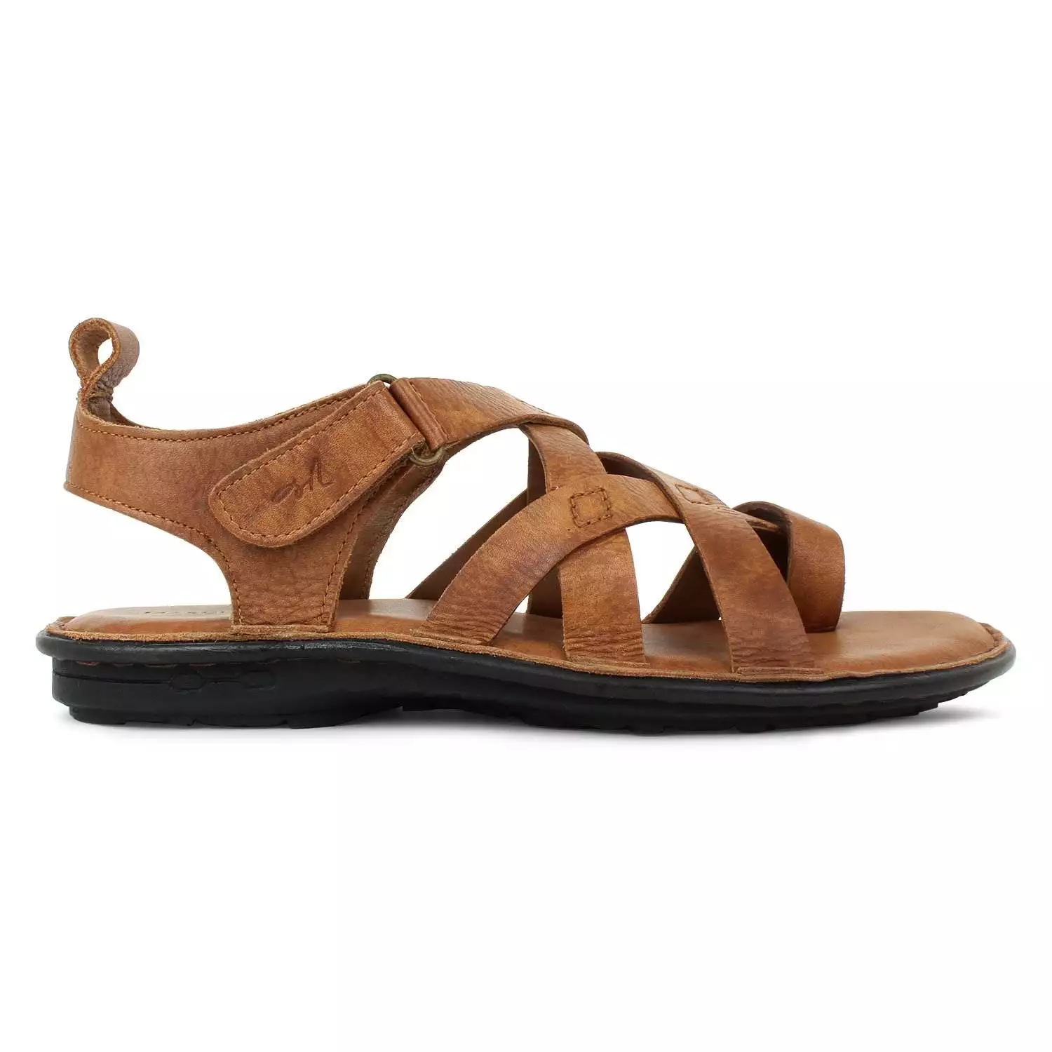 Tan Leather Multi Strap Single Toed Sandals for Men